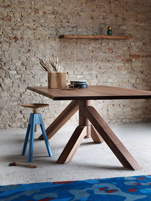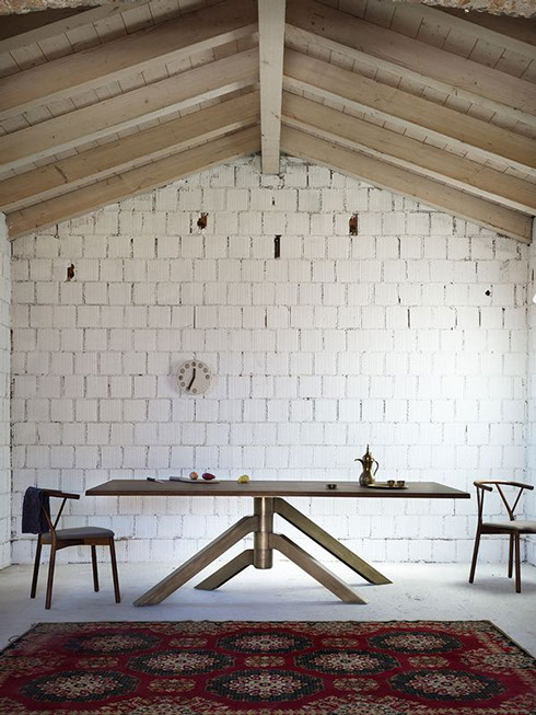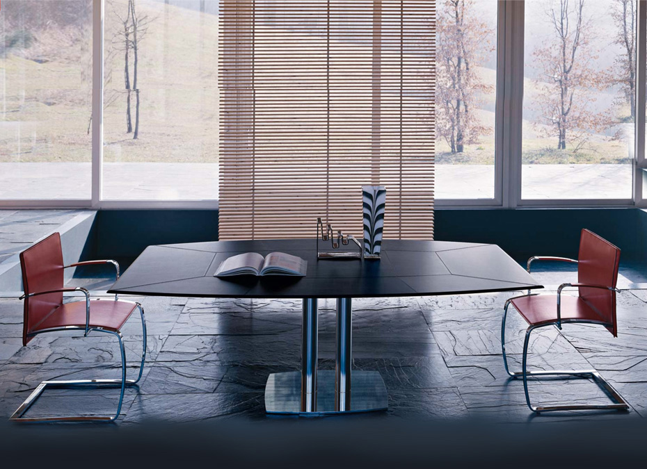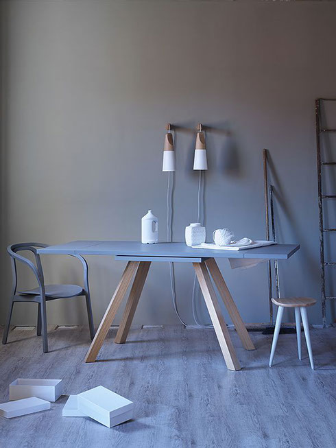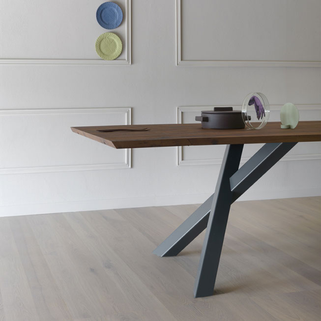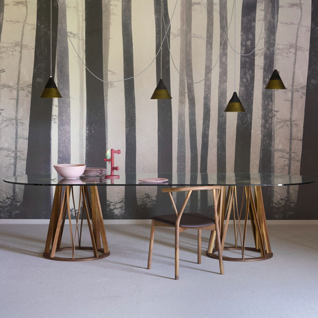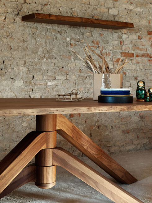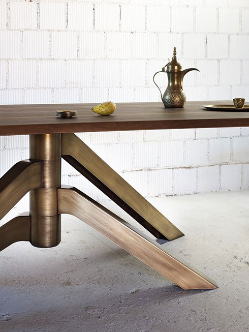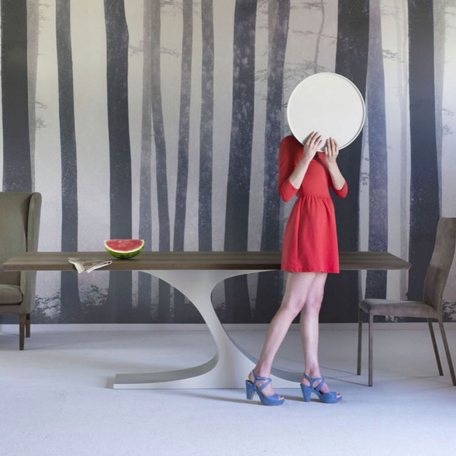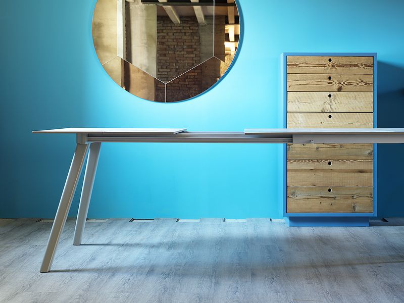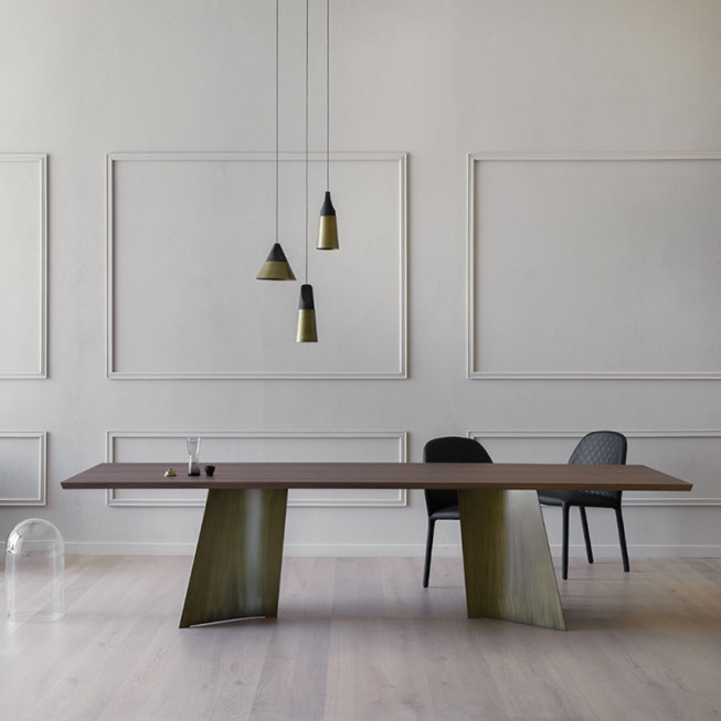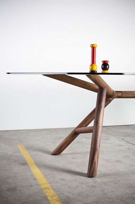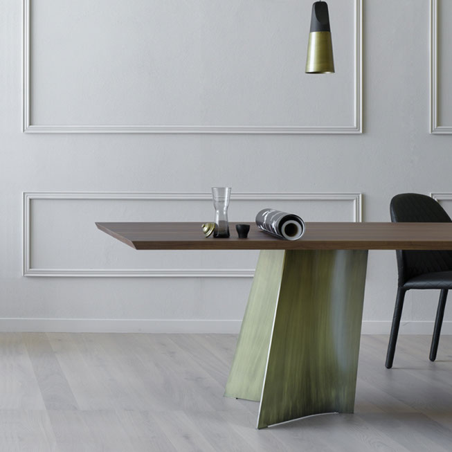 Esta colección de Mesas de Mobles & Architetture que trae en exclusiva para México procedentes de Italia y Alemania producidas por jóvenes talentos, con un estilo vanguardista pensado en una casa elegante y sobria, con materiales auténticos con respeto a las formas y los colores del medio ambiente. Los materiales van desde la madera maciza, la chapa de madera, el acero, el vidrio y el aluminio los cuales son materiales compatibles con el medio ambiente.